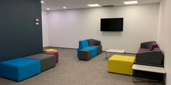 Seating for 15 people (modular seating that can be easily moved & reconfigured), coffee tables, smart tv; newly renovated.